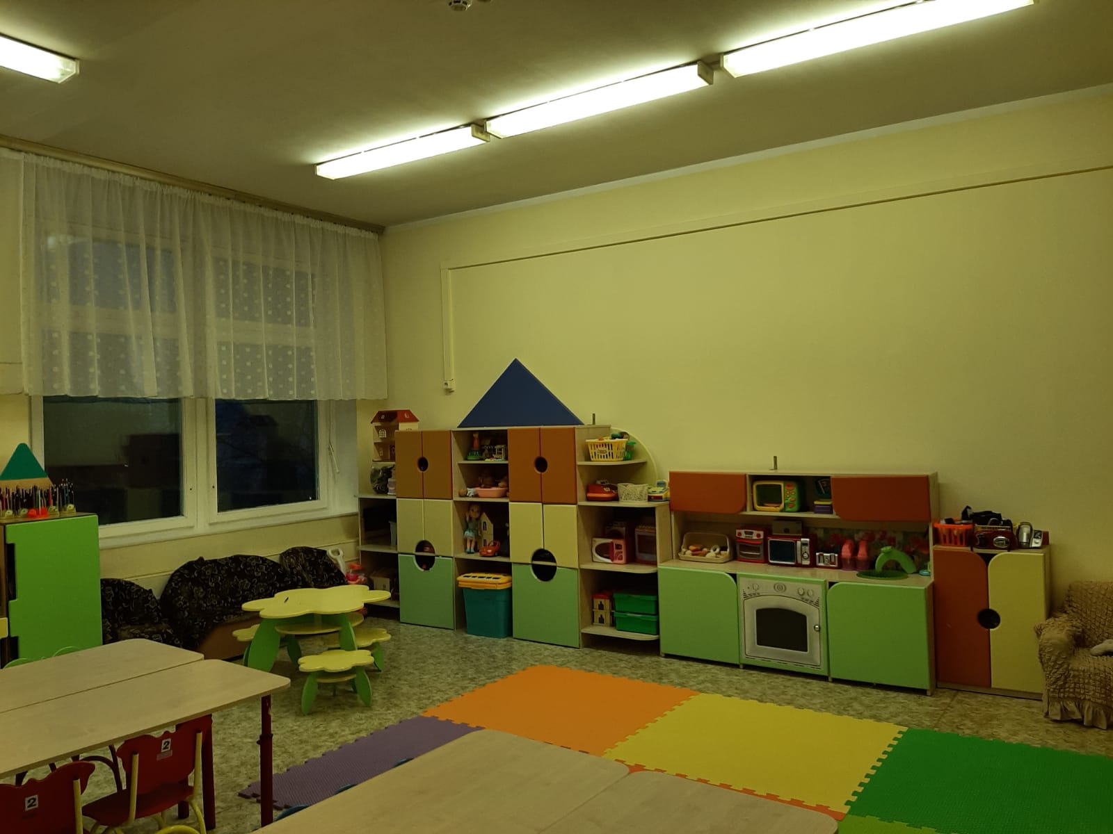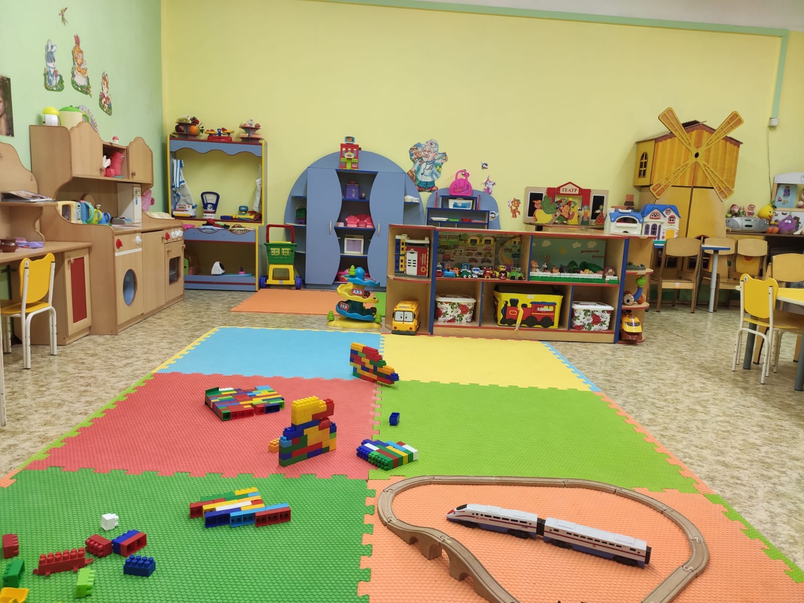 Здание построено по типовому проекту и включает 12 групповых блоков, состоящих из комнаты приема (раздевалки), игровой комнаты, спальни, туалетной комнаты и буфета (комнаты раздачи питания). Все групповые блоки оснащены необходимой мебелью и игровыми пособиями.