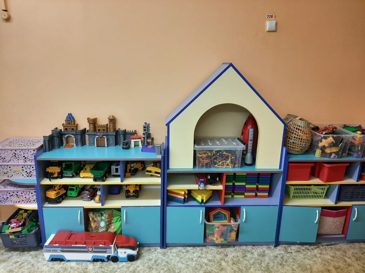 Медицинский блок включает кабинет приема доктора, прививочный кабинет, комнату-изолятор и туалетную комнату. В здании предусмотрен отдельный блок для приготовления питания, имеется блок прачечной, состоящий из постирочной комнаты, комнаты-гладильной и комнаты-сушилки.