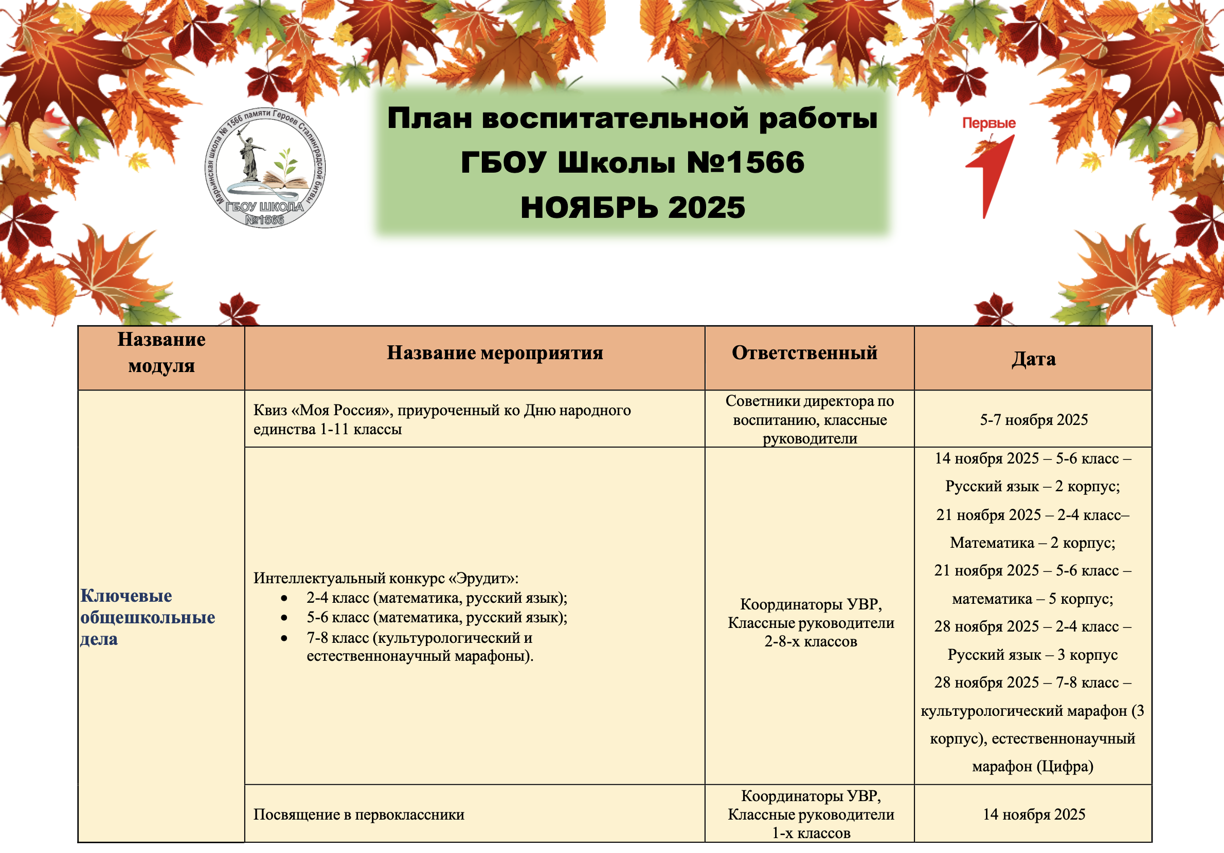 План воспитательной работы на ноябрь, 2025 года 23.10.2025