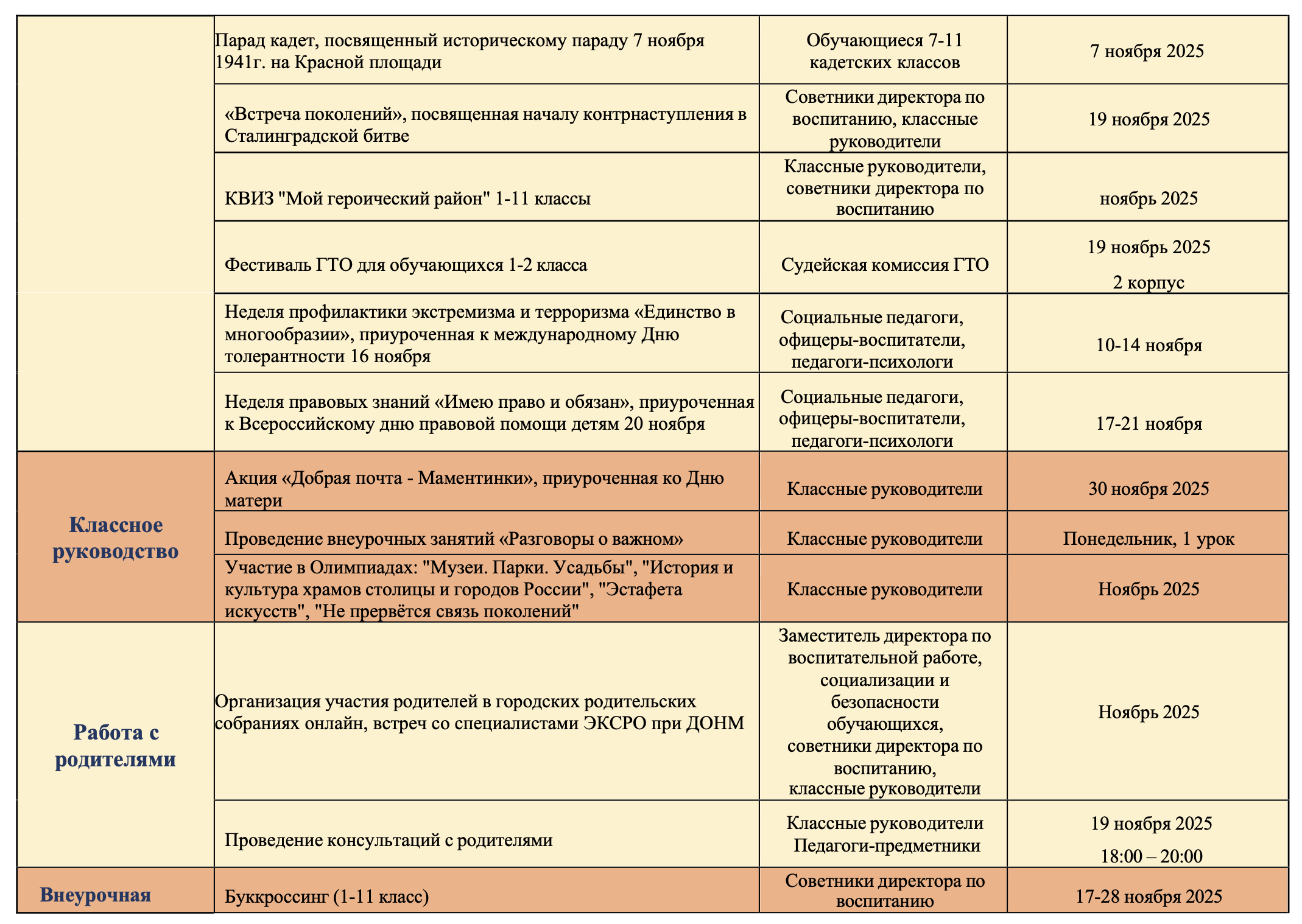 План воспитательной работы на ноябрь 2025г.